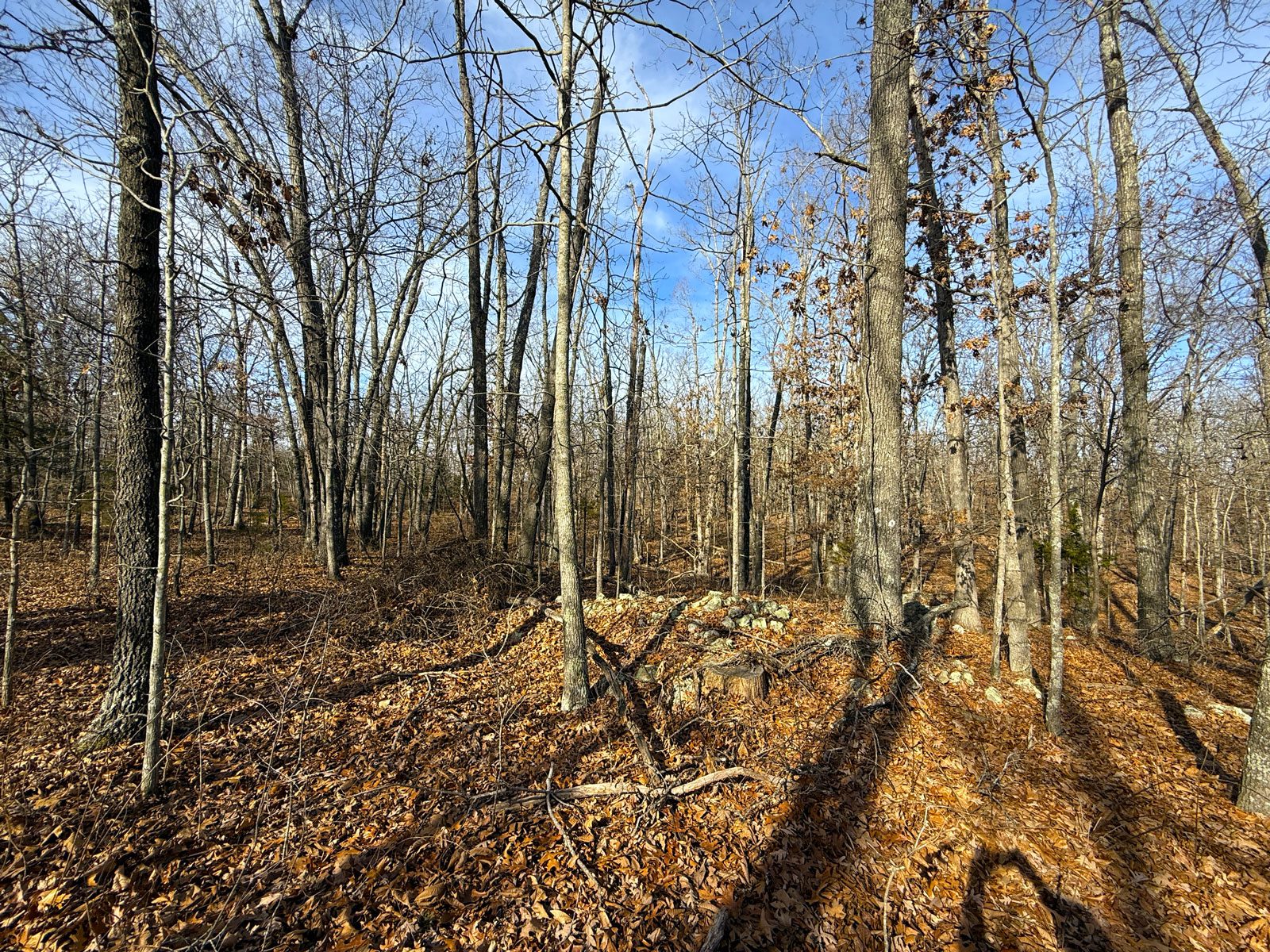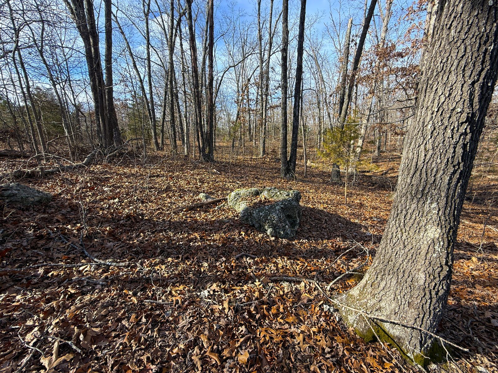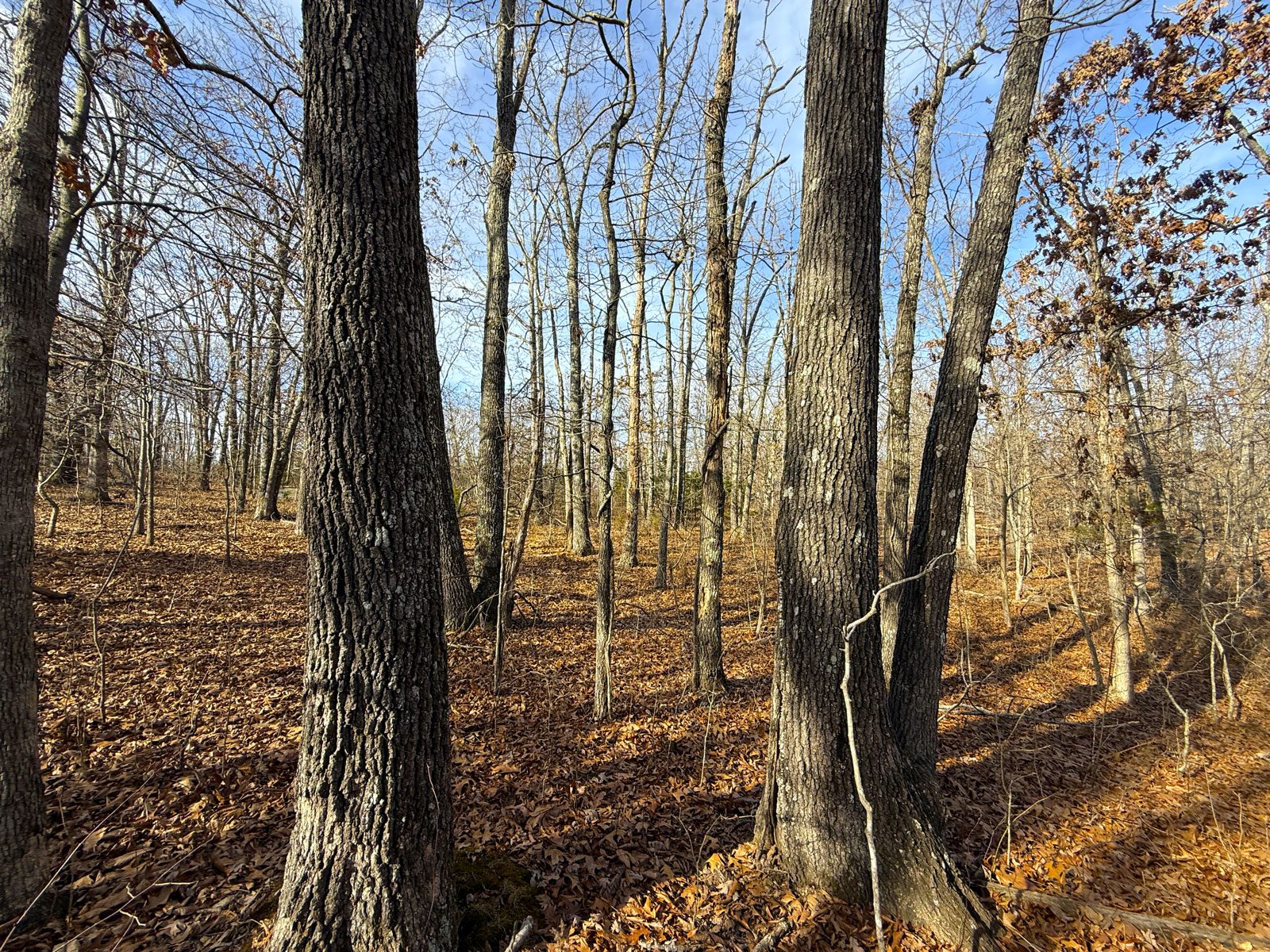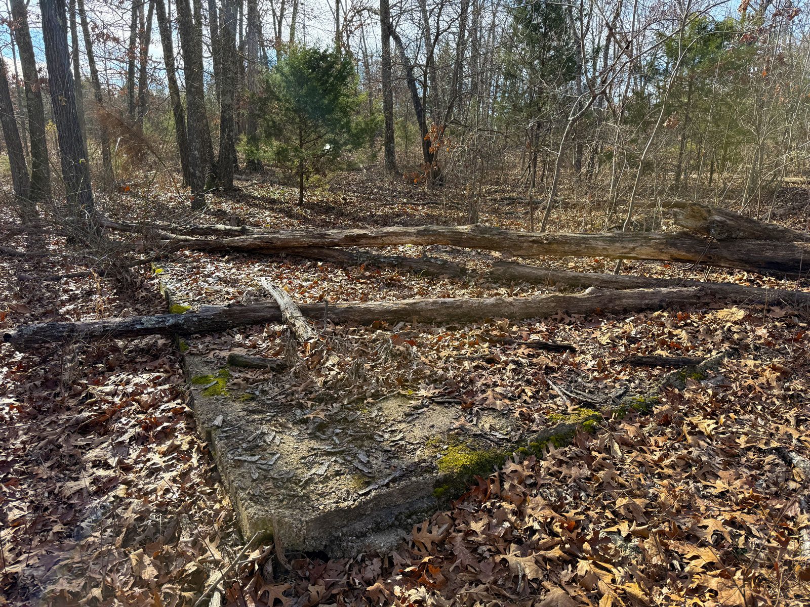 The forestation here is predominantly oak with examples of hickory, walnut, and many other species typical of Ozarks forest. As mentioned, the property is pretty level; there is a slight slope from the county road (west) to the back of the property (east). The southeast corner is elevated from the rest of the parcel by about 10 feet. Something kind of neat we noticed on the parcel is a concrete slab, presumably left from a homestead that was there many decades ago. We didn’t have a good way to measure it, but our best guess is that it’s about 15x20 feet in dimension. This might prove to be an ideal location to set up your tiny home.