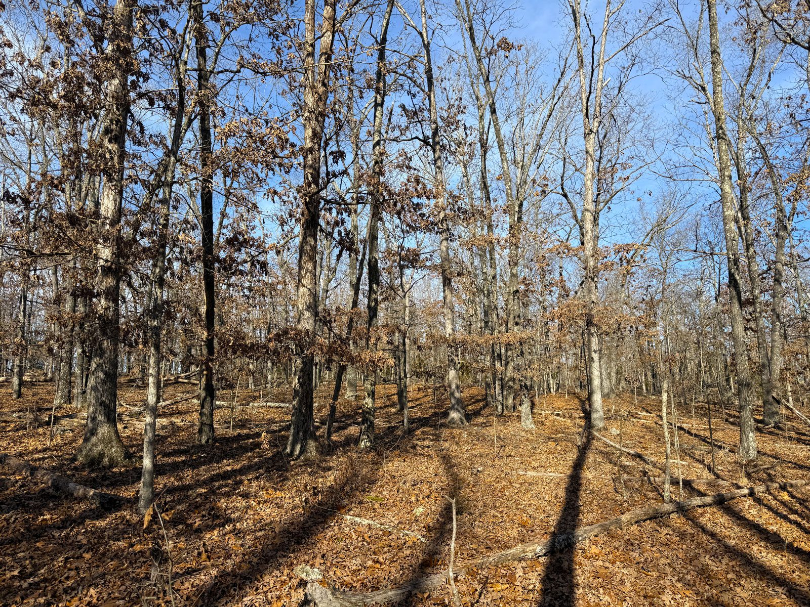 Foggy Ridge Parcel K is 1.36 acres of almost completely level forest in Wright County, Missouri. The property has 178.79 feet of frontage along Hall Road, a county-maintained gravel road. The drive on gravel isn’t a long one, though, as the property is about 2.5 miles from pavement. This puts you less than an hour's drive from the third-largest city in Missouri, Springfield—virtually all of it on a four-lane highway. The little burg of Macomb, which is about 2.5 miles north of the property, doesn’t have much for amenities, but there is a post office. Mountain Grove is about a 20-minute drive and has multiple restaurants, grocery and hardware stores, as well as a Walmart.