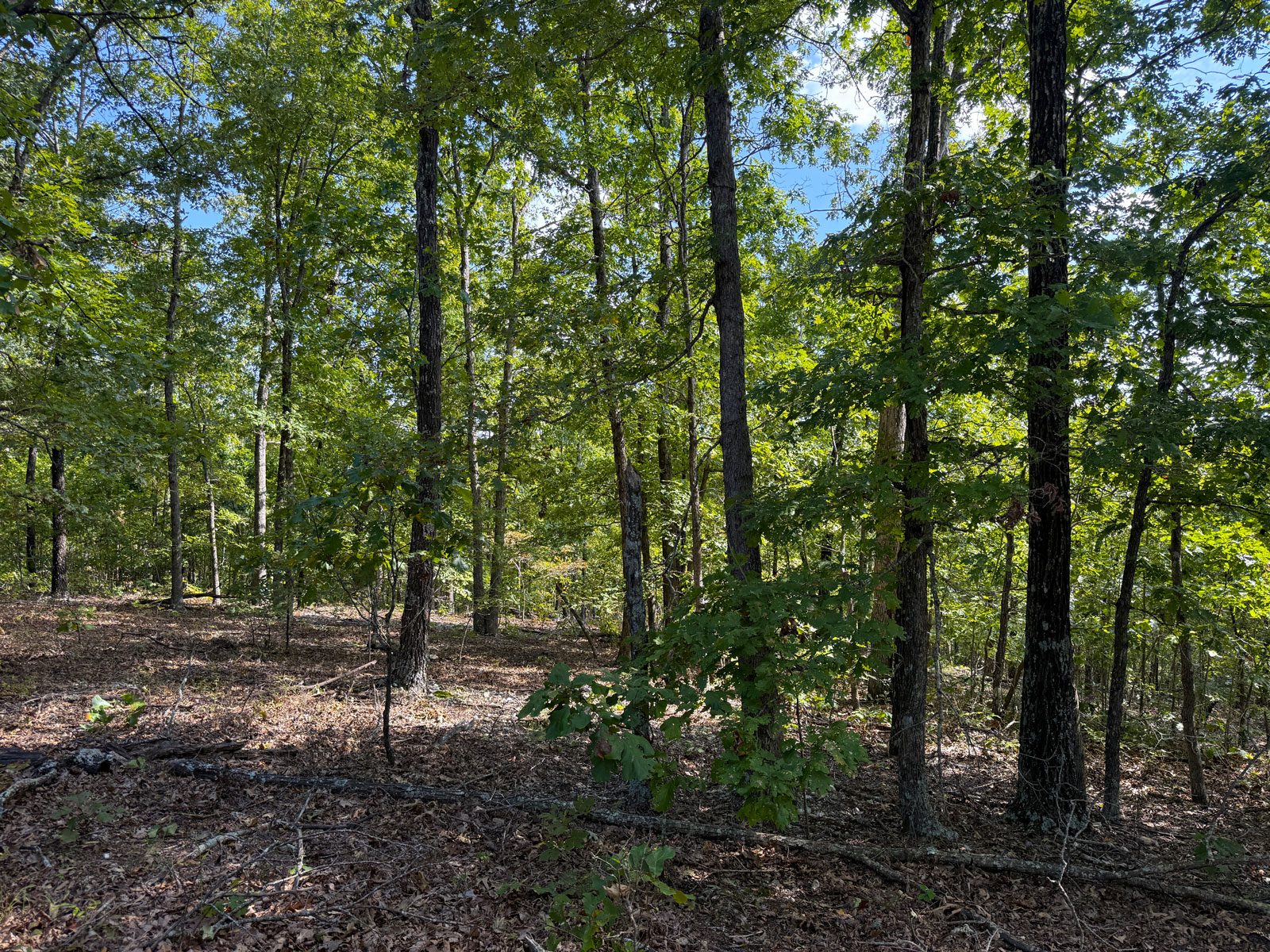 This 6.25 acres begins at the top of the Ozark Divide and the beginning of the Jacks Fork watershed. The vegetation is an oak-and-hickory-dominated mixture of hardwoods. The terrain is a gentle southern slope that will be a benefit to any solar power projects you plan to install. The elevation ranges from around 1500’ (along the access road) down to about 1425’ above sea level. Typical of Ozark woodland, the topsoil is thin and rocky and the subsoil is red clay overburdening limestone bedrock.