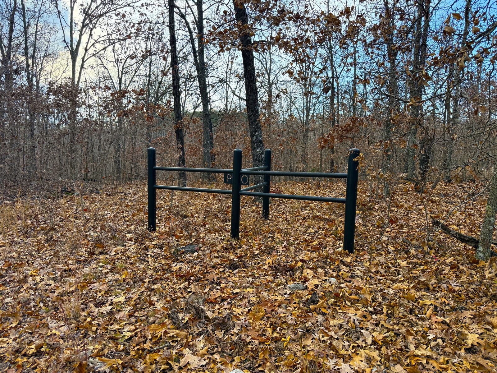 We have cleared and leveled an approximately quarter-acre homesite at the end of a driveway that we’ve hardened with crushed rock. We’ve also added a sixteen-foot steel pipe gate hung on sturdy welded steel 5-inch posts driven two feet into the earth at the entrance to the parcel. There is also a welded steel fence corner where the north and south boundaries meet the access road.