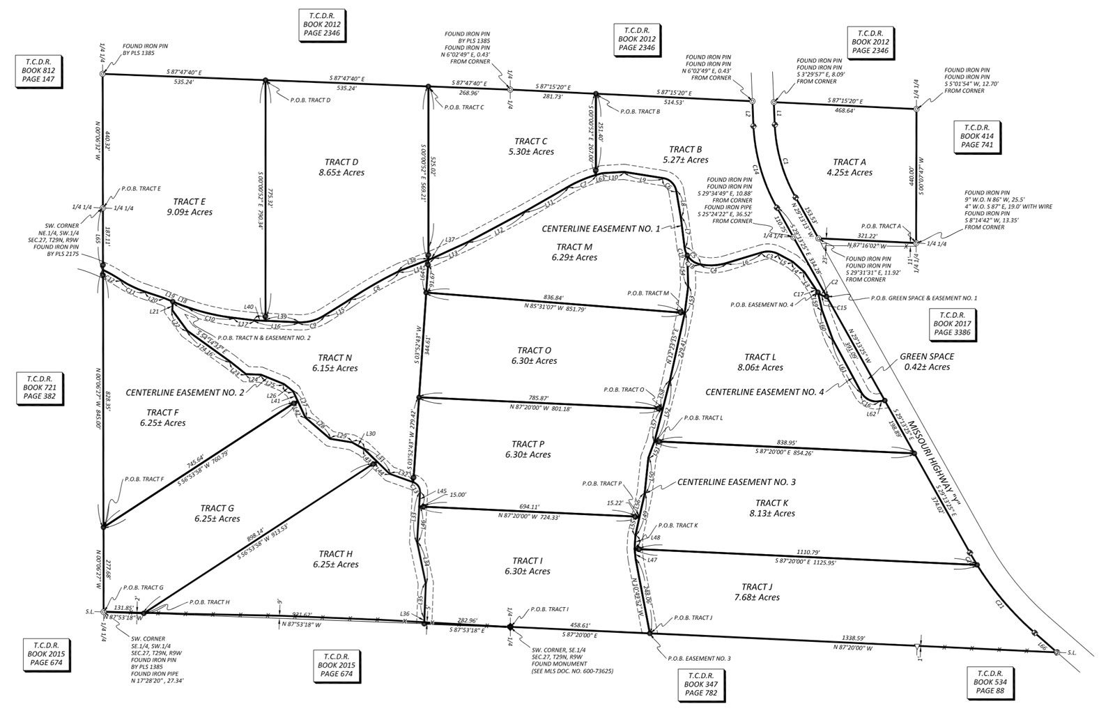 - Ozark Divide Parcel P: as shown on the Official Plat of Ozark Divide recorded in the Office of the Texas County Recorder, Houston, MO, Survey Book 2019S, Page 34, Instrument Number 201900034, all in Section 27, Township 29 North, Range 9 West.