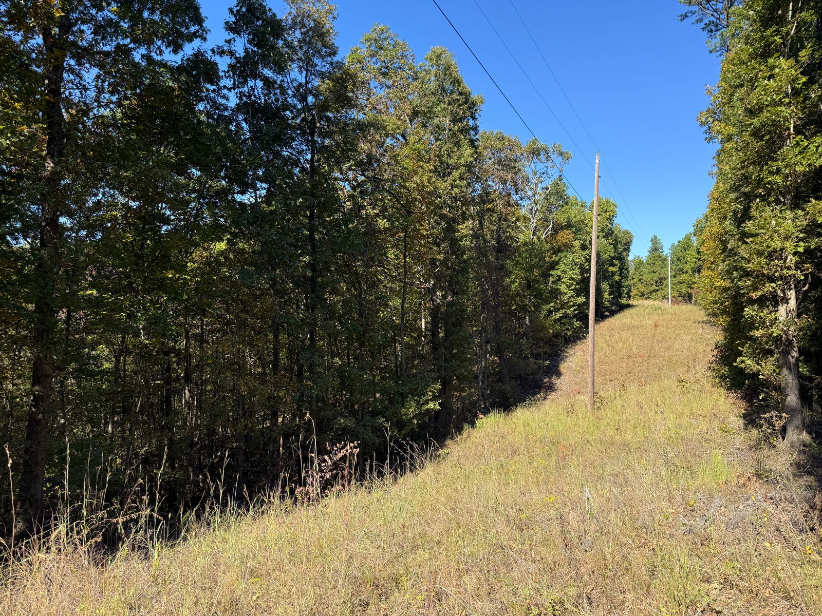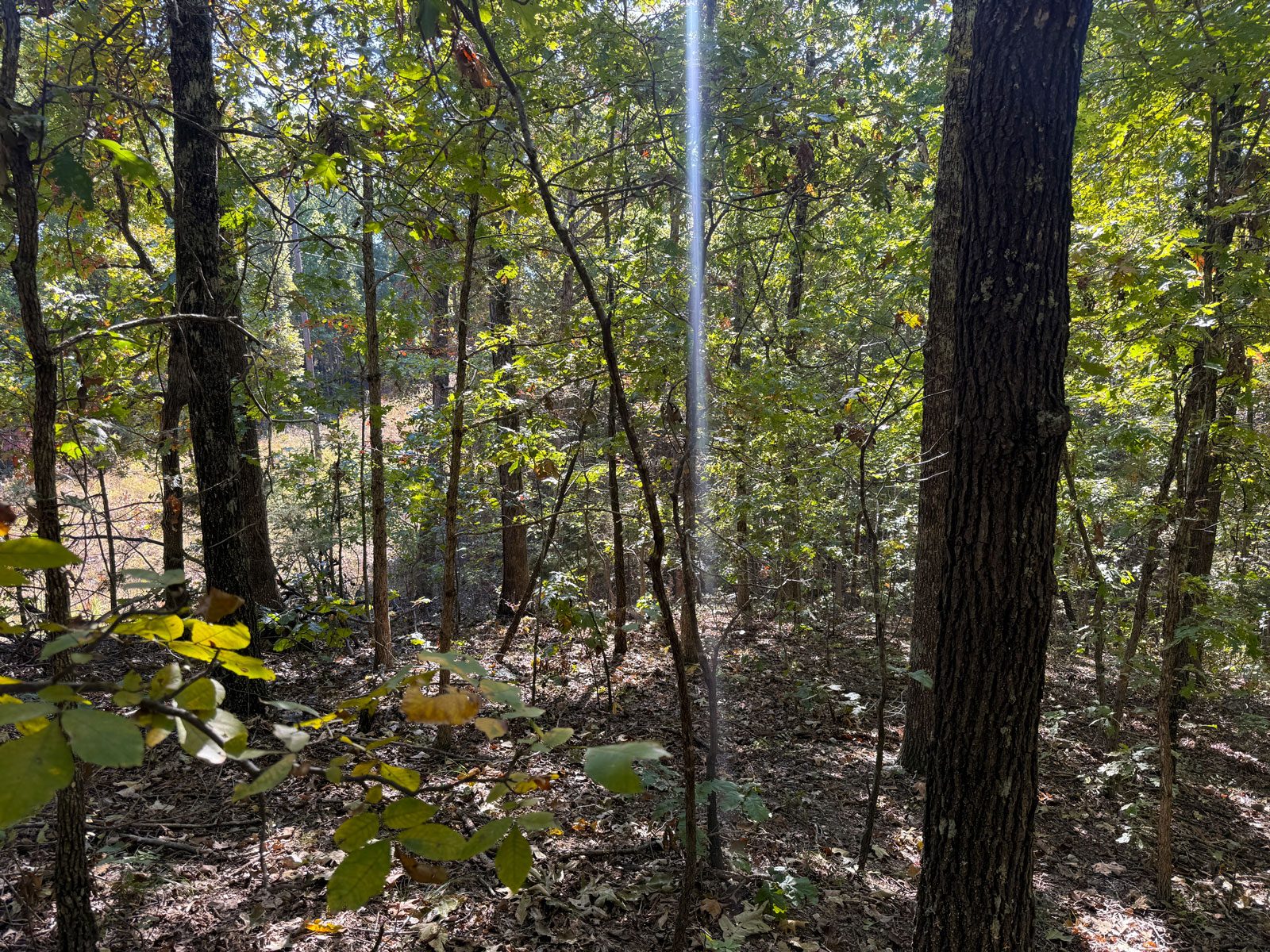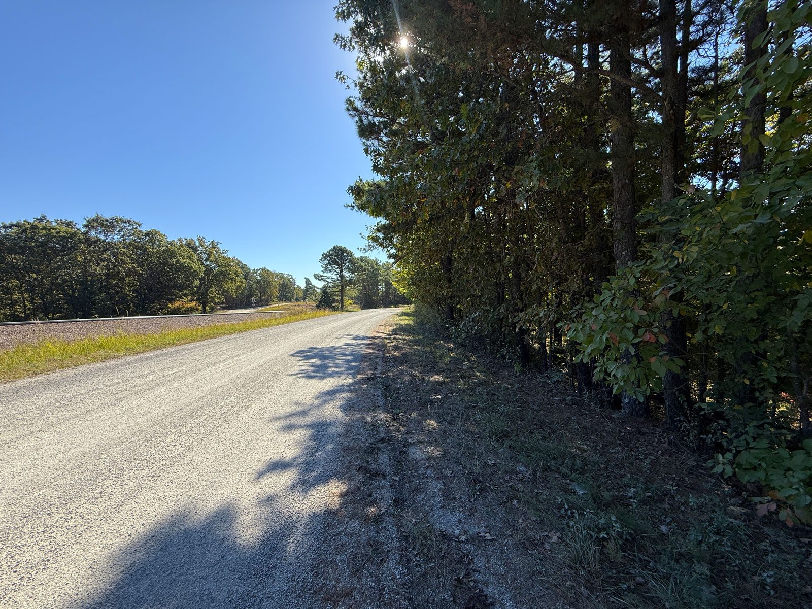 The Willow Springs Railroad Property is 1.98 fully-surveyed acres of dense, mature woods that sit just off County Road 3820 in Howell County, Missouri. Much of the county road is gravel, but, as luck would have it, the section along the parcel is paved from where it crosses a set of railroad tracks to the southeast, all the way to State Highway 60/63, a little over a quarter mile northwest. This paved section includes all 314.45 feet of frontage that make up the parcel's eastern boundary. The highest elevations are around 1,490 feet on the northeast and southeast sides of the property (the corners that front the road). From there, it slopes down to a valley near the center of the property, where the elevation is about 1,470 feet.